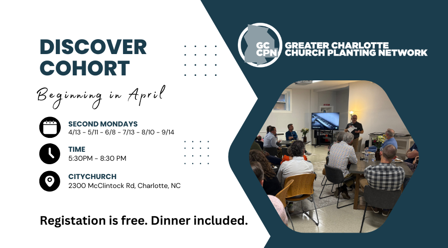 Beginning in April, we’ll host our monthly Discover Cohort for six Monday evenings from 5:30–8:30 PM. This cohort is designed not only for those considering church planting, but also for staff teams who want to cultivate church-planting DNA in their culture, individuals who may join a future plant in any capacity, and anyone simply curious to learn more.